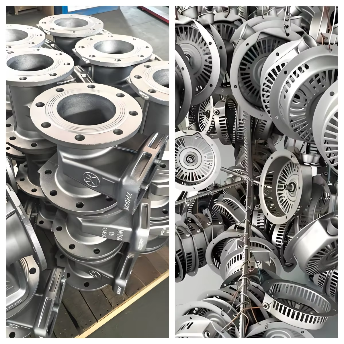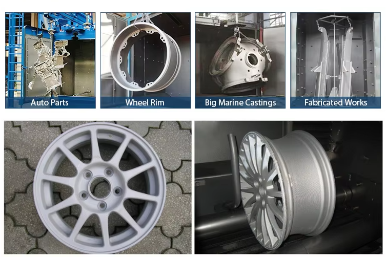 In the automotive parts manufacturing industry, it is used for automotive components that require high surface quality and fatigue resistance, such as chassis parts, brake discs and wheel hubs.The hook type shot blasting machine can not only realize surface cleaning, but also strengthen product performance.By bombarding the metal surface with high-speed shots, the machine forms a uniform compressive stress layer on the surface, thereby improving the wear resistance and service life of automotive parts.
